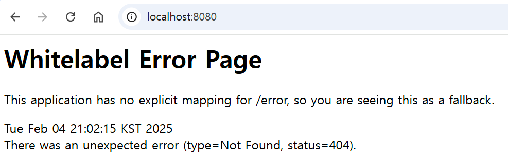 정상적으로 실행됐다. Spring에 내장된 Tomcat이 8080 포트로 웹 애플리케이션을 실행한다.